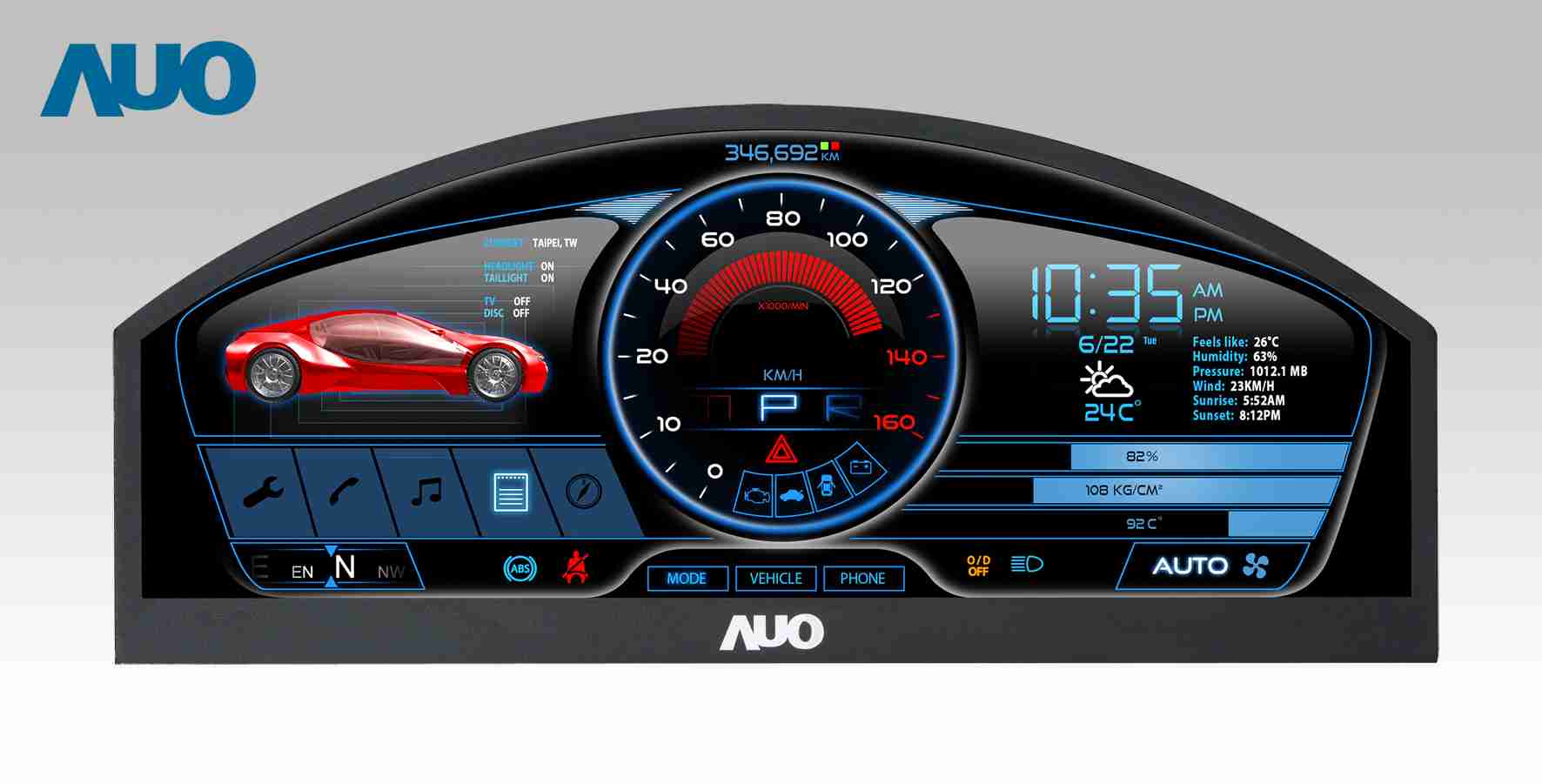 开云电子 LTPS 产品成功导入全系列车用面板,,,,产品线广布仪表板、、中控台、、、、后照镜与抬头显示器等应用。。12.3吋异型切割仪表板 LTPS 液晶屏,,具备 AHVA 超视角高清晰技术、、窄边框、、、、低耗能等特色,,,色彩饱和度高达 NTSC 100%,,,,超窄边框展现极致流线外观。。。。8.8吋全镜面后照镜 LTPS 液晶屏采全屏幕异型切割设计,,超窄边框仅 1.9 毫米,,,,同时具备高亮度、、、低反射、、快速反应及省电优势,,,,可依驾驶需求于高解析画面及传统镜面模式之间切换,,,,确保行车视野完整,,大幅提升汽车行驶的安全性。。