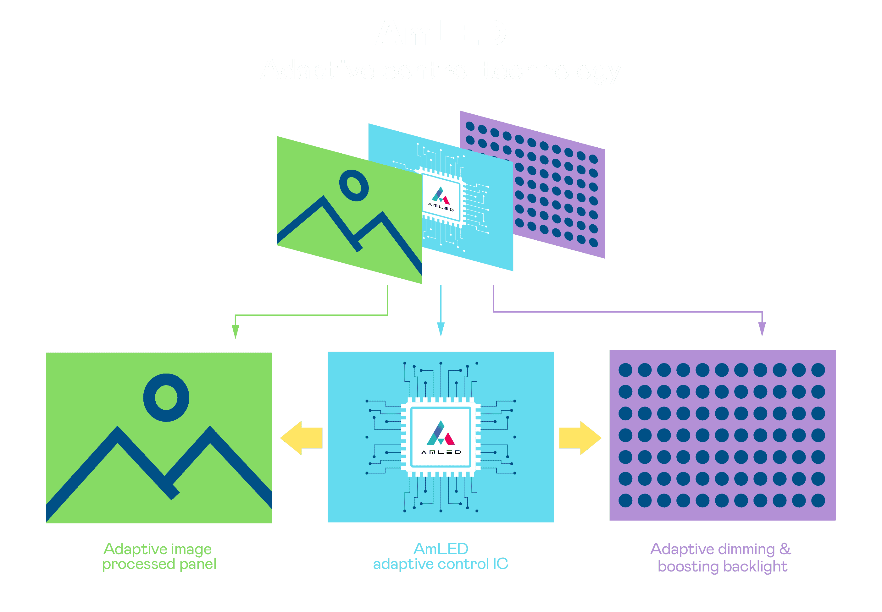 透过动态影像处理和 Mini LED 背光模组的动态对比及峰值亮度调变,,AmLED 显示技术精准细致的局部调光效果达到超过 1,000 nits 的超高亮度表现,,,亮部更明亮、、、、暗处更深邃,,呈现真实黑色中的亮度以及平滑灰阶,,,,打造出具层次分明的精致光影细节。。