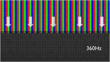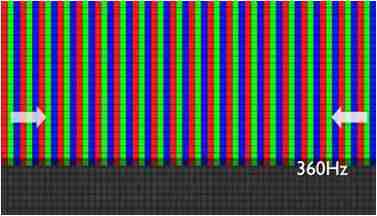 传统液晶驱动是从左到右单向进行,,,,在画面更新速度愈来越愈快的情况下,,位于驱动线路末端的右下角区域,,,,画素的闸极来不及在短时间内获得足够电压,,,,无法显示出正确的颜色资讯。。 |