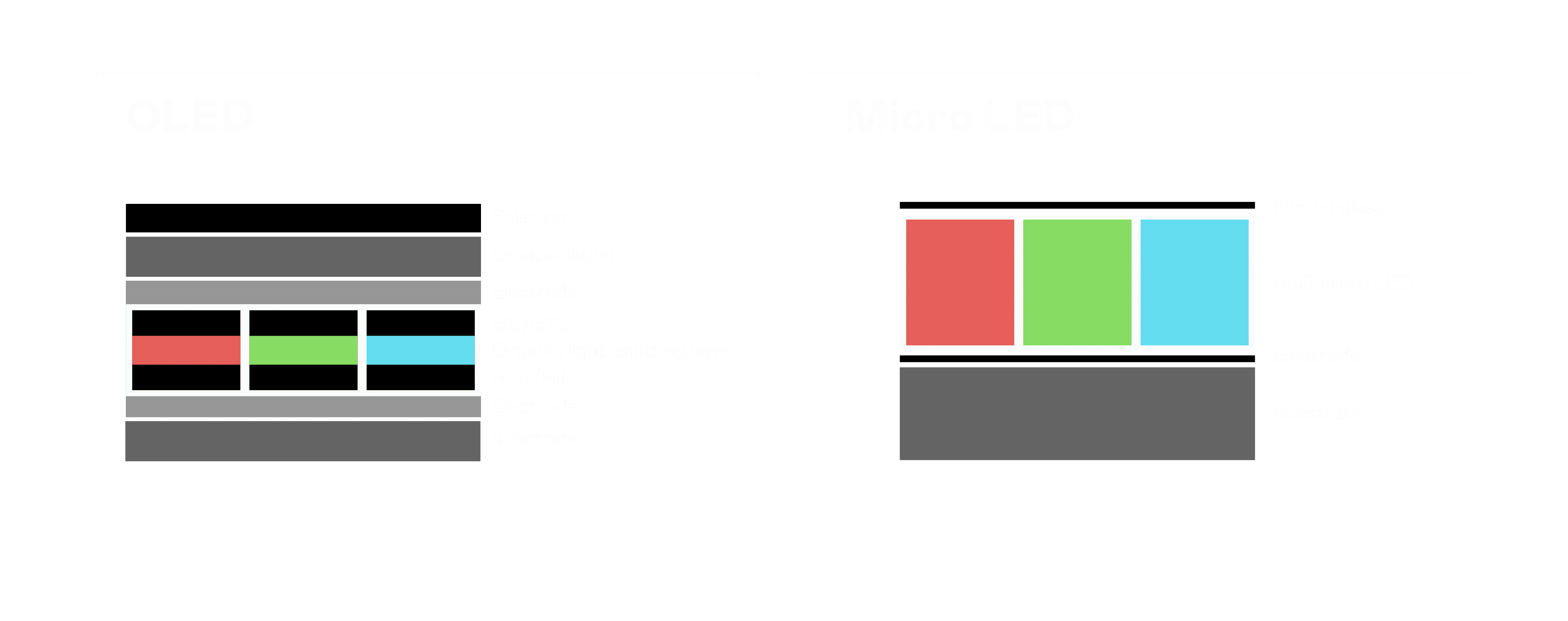 以 LED 做为显示画素,,,,可让 LED 的发光效率发挥到极致,,,,从而让显示器具备优异的亮度表现,,不论是在户外或室内,,,,均具备出众的显示效果。。同时,,,与使用有机材料的 OLED 相比,,,,LED 具备更稳定、、、寿命更长的特性,,,不仅不会有画面烙印问题,,而且更不容易出现故障、、坏点。。。